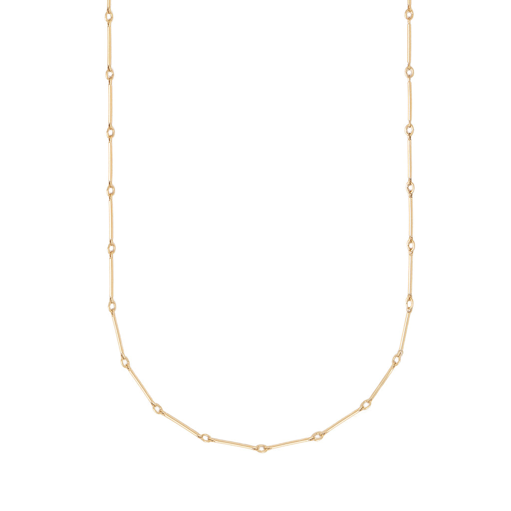 Our bar chain necklace does double duty: it can be worn long or doubled as a choker. She is also the perfect chain on which to add a charm. *chain can also be cut to any length- just ask us!