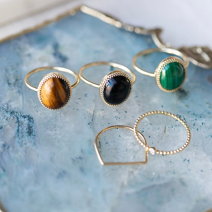 Our onyx crown bezel ring is total stunner. A cabochon, oval onyx is set in a crown bezel for a ring fit for a queen.